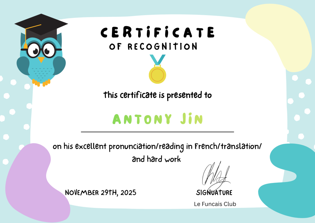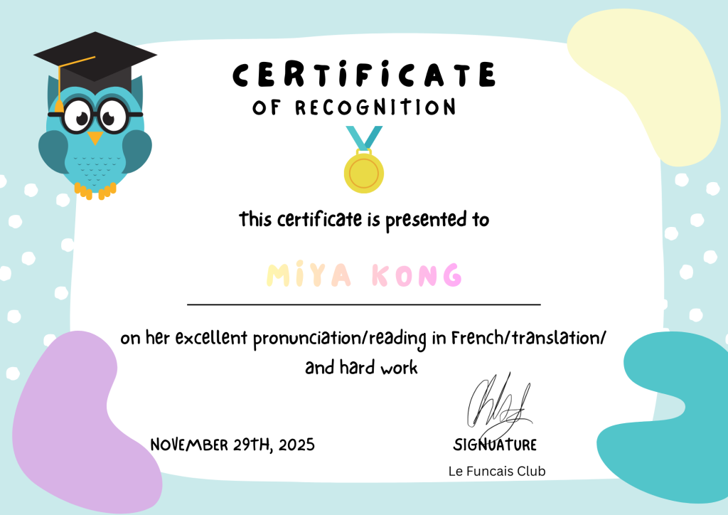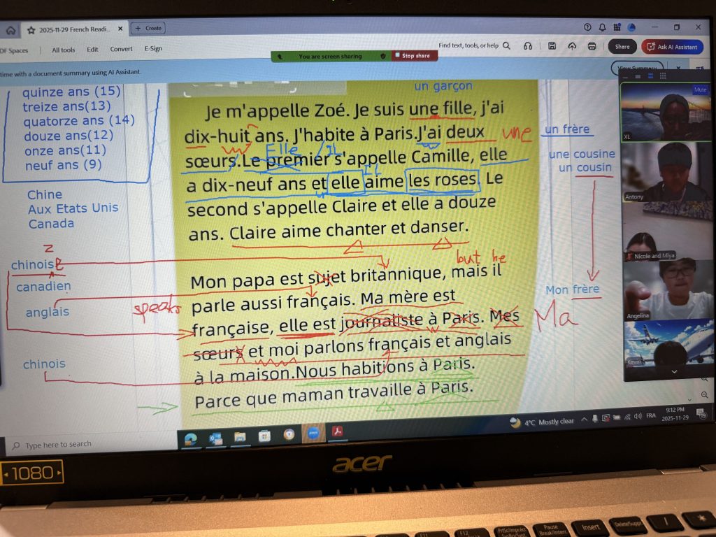 2025/11/29 French Reading Writing Session 21 – Je m’appelle ………..